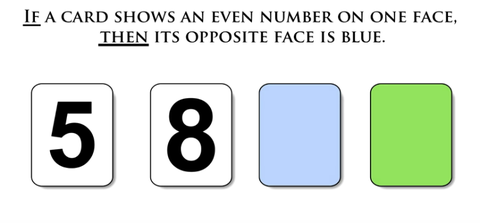 - The claim to test is: “If a card shows an even number on one face, then its opposite face is blue.”
